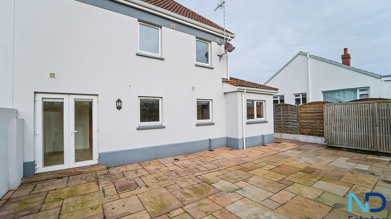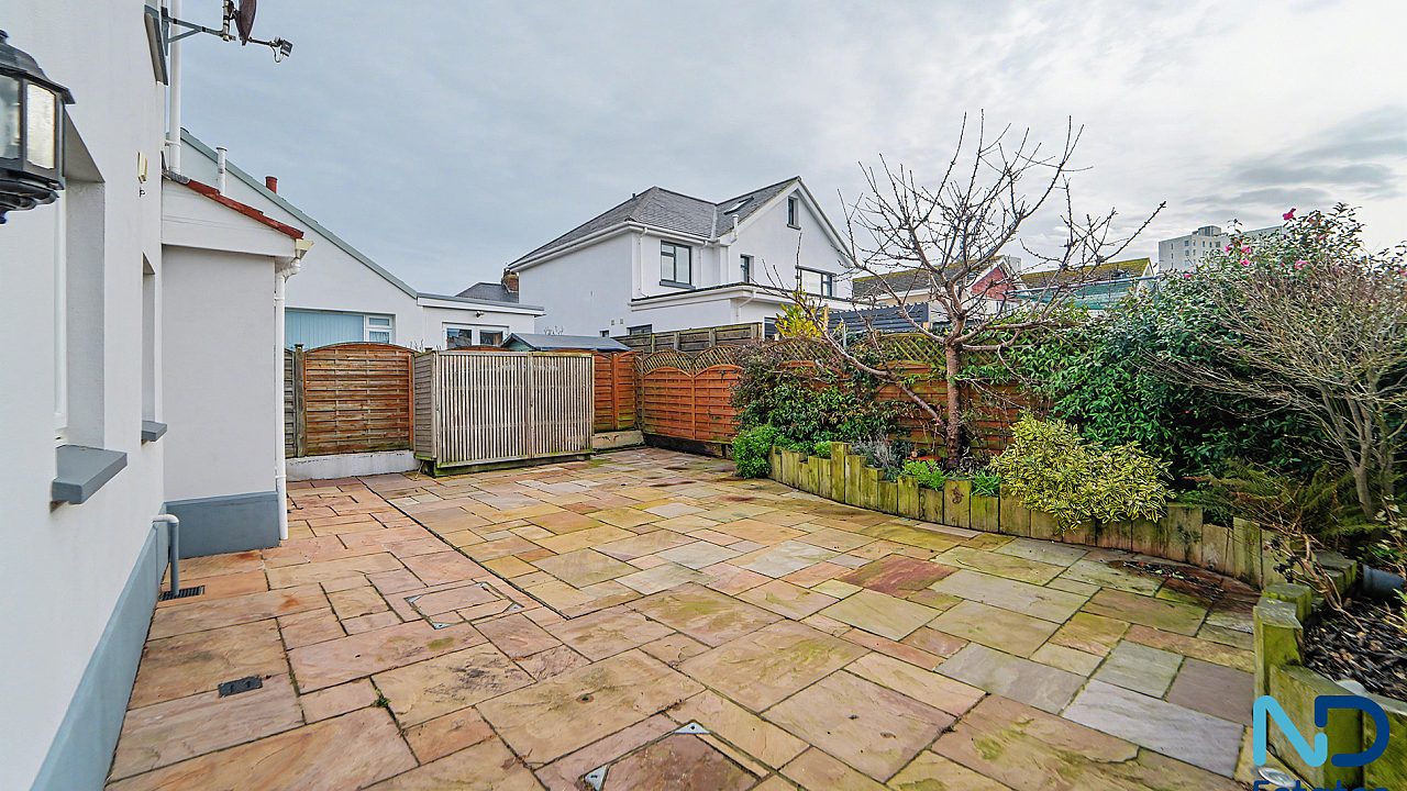All three bedrooms are wellproportioned, making the home perfectly suited to a growing family. To the rear, you’ll find a spacious southfacing patio garden complete with a shed, as well as a single garage and driveway parking for up to four cars. With the beach and local shops only a short stroll away, this property combines comfort, convenience, and coastal living.