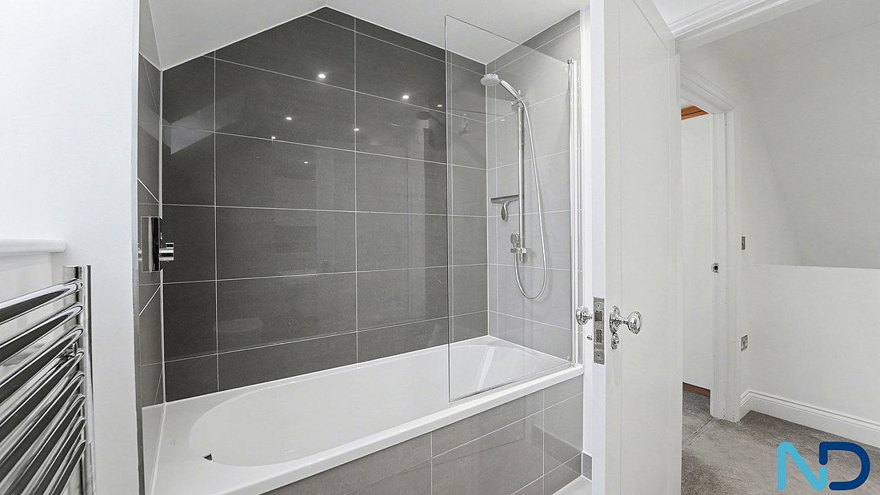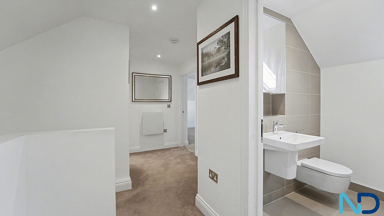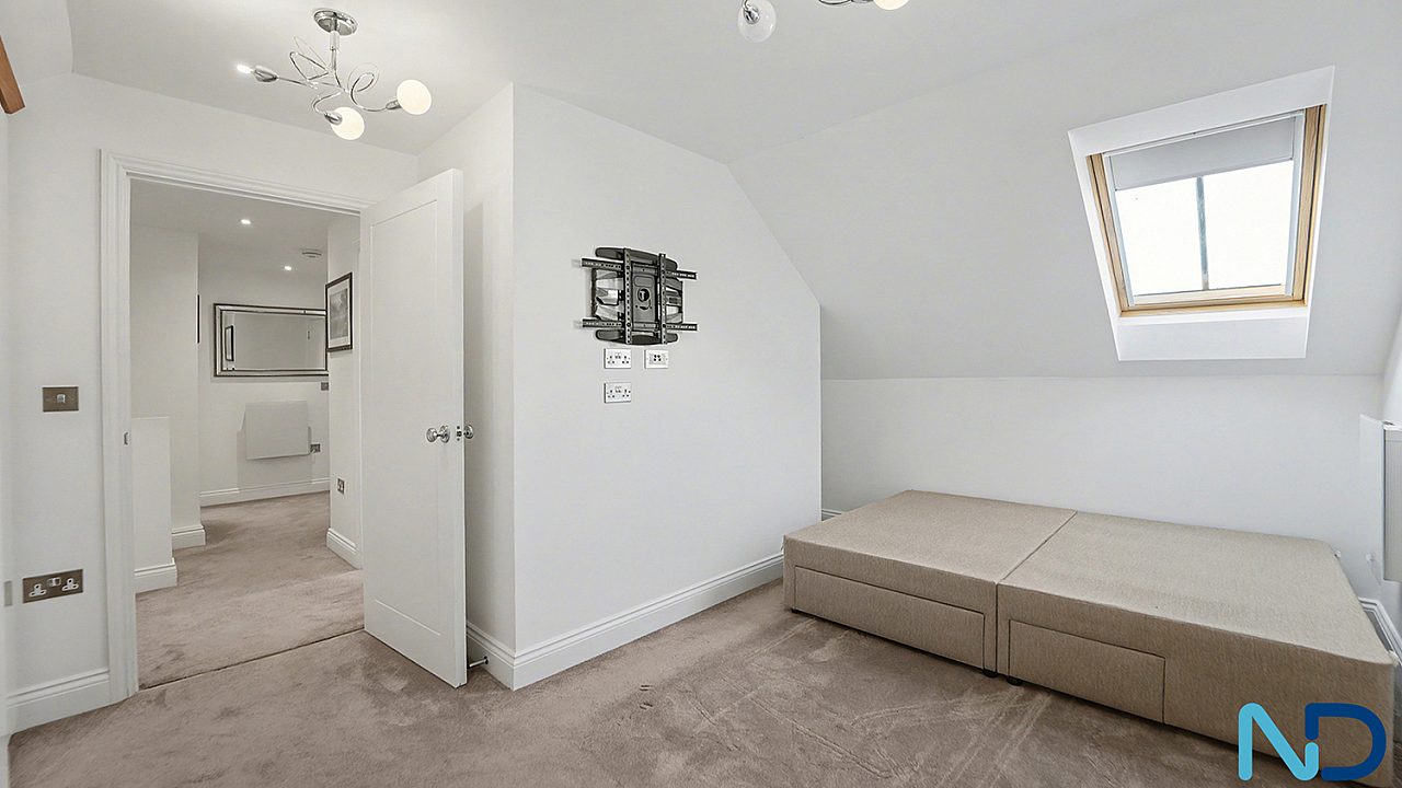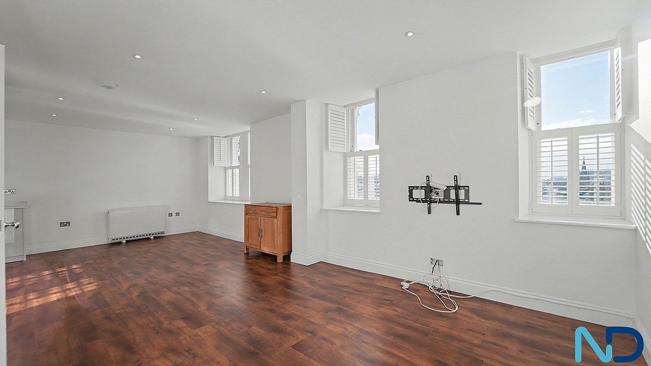 This unique duplex apartment is split over two levels and measures 1310 sq ft. The home includes four bedrooms and three bathrooms, a spacious living room overlooking the front gardens and a separate modern kitchen. The property has two designated tandem parking spaces plus visitor parking and attic storage. The apartment is set within Nightingale House beautifully landscaped gardens and there is a communal gym within the complex.