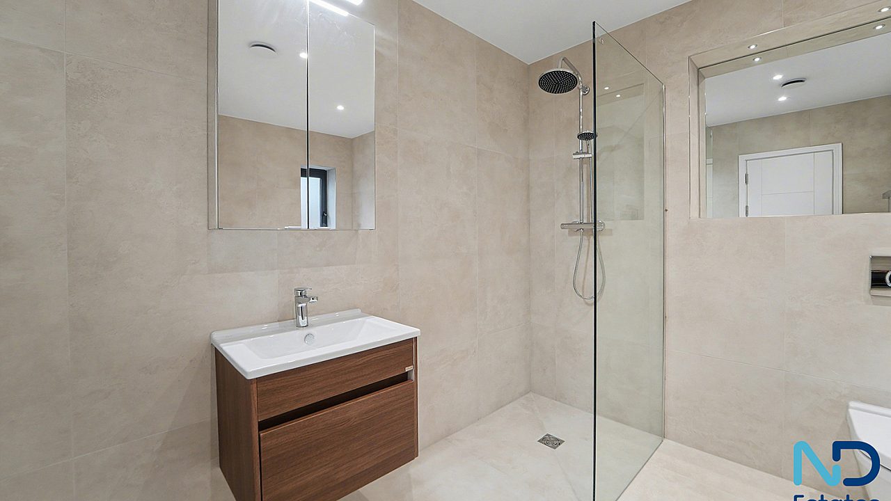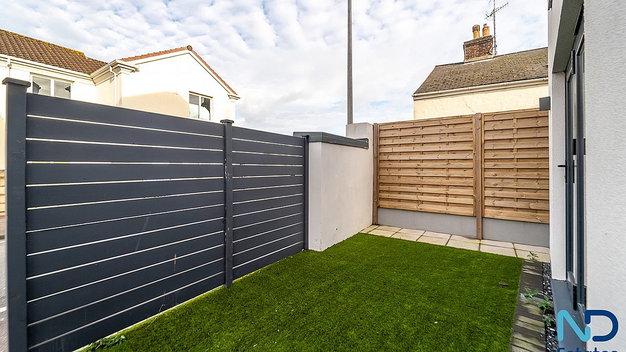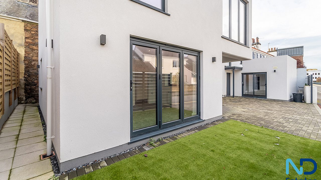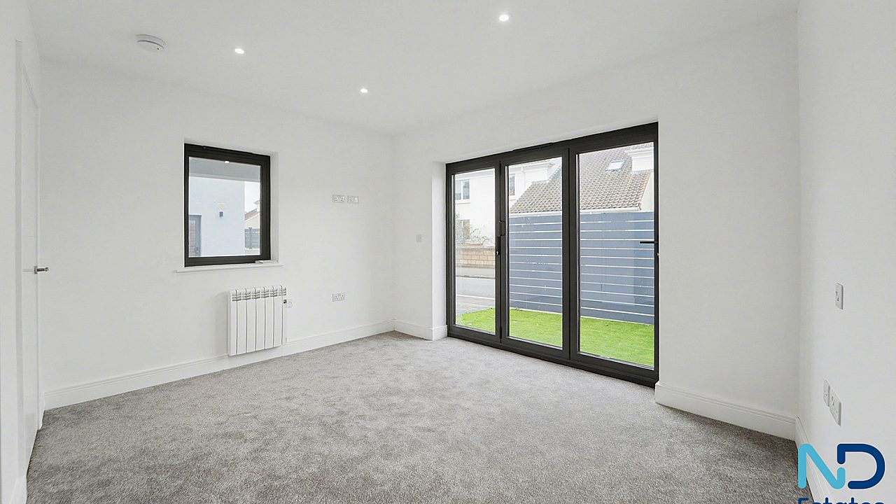 A newly constructed, innovative three-bedroom eco townhouse arranged over three storeys, extending to approximately 120 m². The home is thoughtfully designed with the main living, kitchen, and dining space on the top floor, opening onto a west-facing balcony with open park views—ideal for evening light and sunsets. Additional features include driveway parking (EV-ready) and a small patio area.